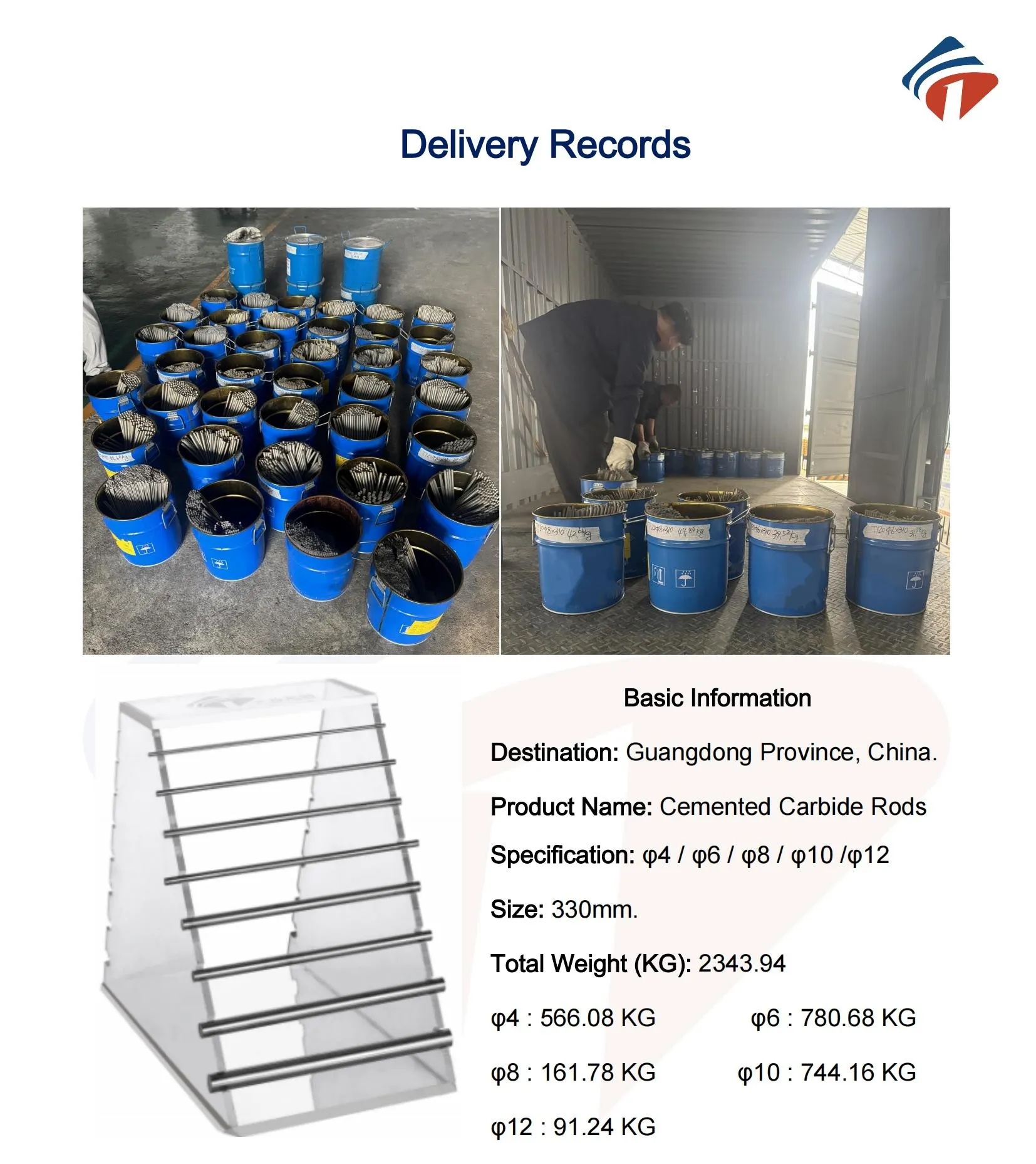 2349KG Tungsten Carbide Rods Delivery To GuangDong.