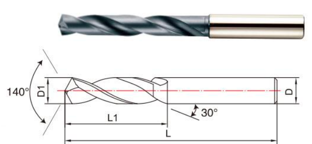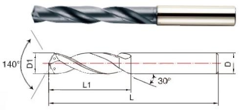 Solid carbide twist drill, 5xD